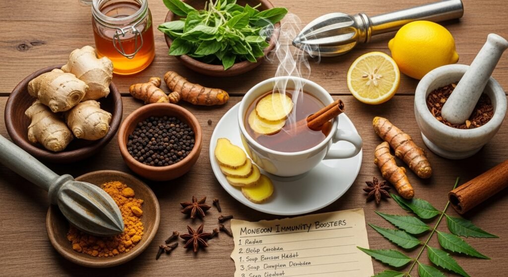 மழைக்காலம் என்பது குளிர்ந்த சூழலைக் கொண்டுவருவதுடன், சளி, காய்ச்சல் மற்றும் பல்வேறு நோய்த்தொற்றுகளுக்கான வாய்ப்புகளையும் அதிகரிக்கிறது. எனவே, இந்தக் காலத்தில் நம் உடல் எதிர்ப்பு சக்தியை (உடல்நோய் எதிர்ப்பாற்றலை) வலுவாக வைத்திருப்பது மிக அவசியம். விலை உயர்ந்த மருந்துகளைத் தேடிச் செல்லாமல், நம் வீட்டில் இருக்கும் எளிய பாரம்பரிய வீட்டுச் சிகிச்சைகள் மூலமாகவே இதைச் செய்யலாம்.